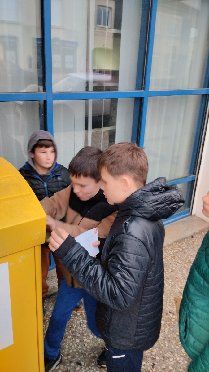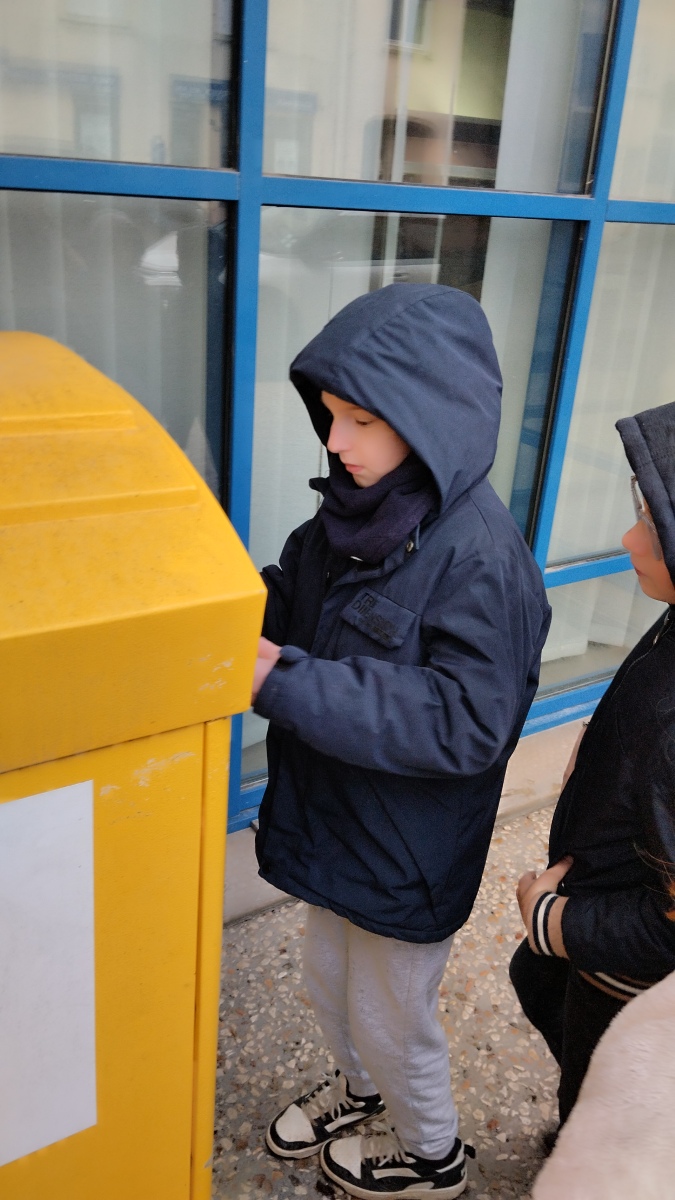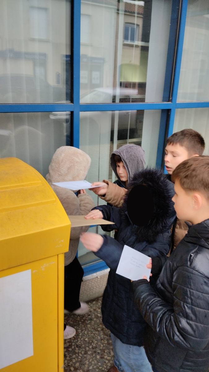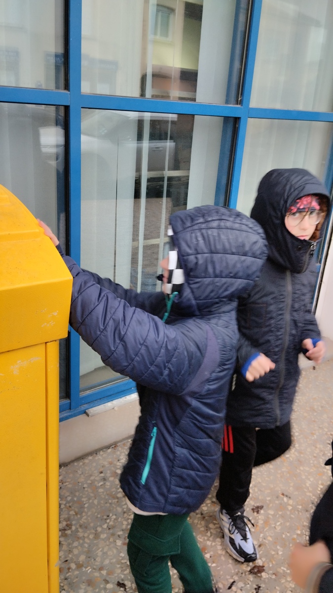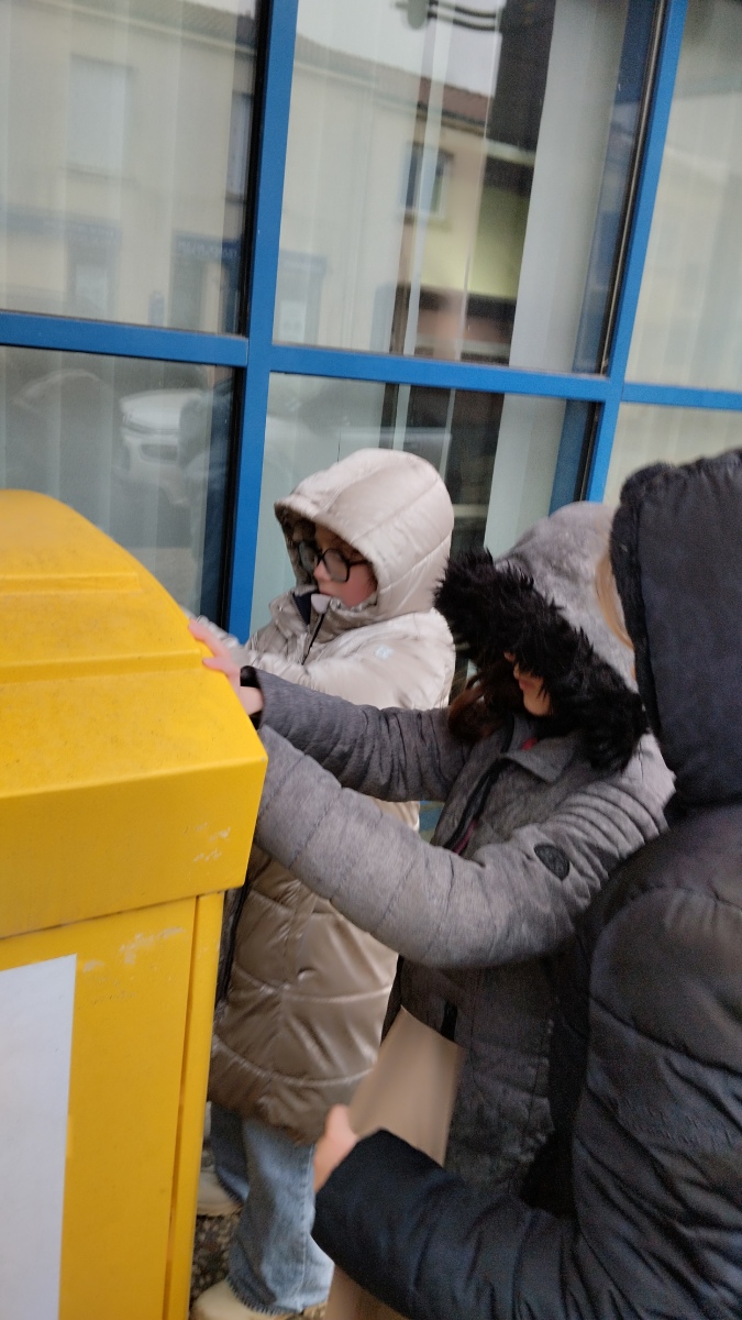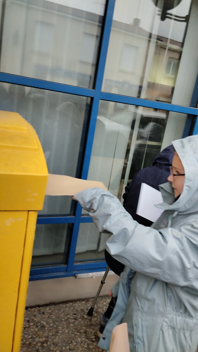 Chaque élève a créé une carte pour la personne de son choix. Nous avons ensuite préparé les enveloppes (un vrai apprentissage) et sommes allés poster les courriers le vendredi 30 janvier. C’était moins une !