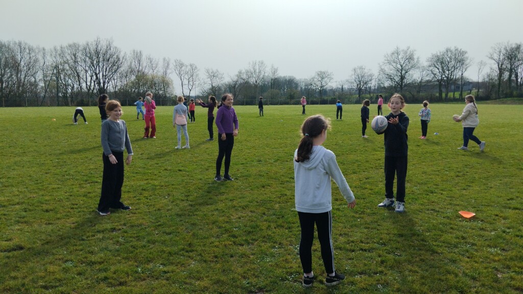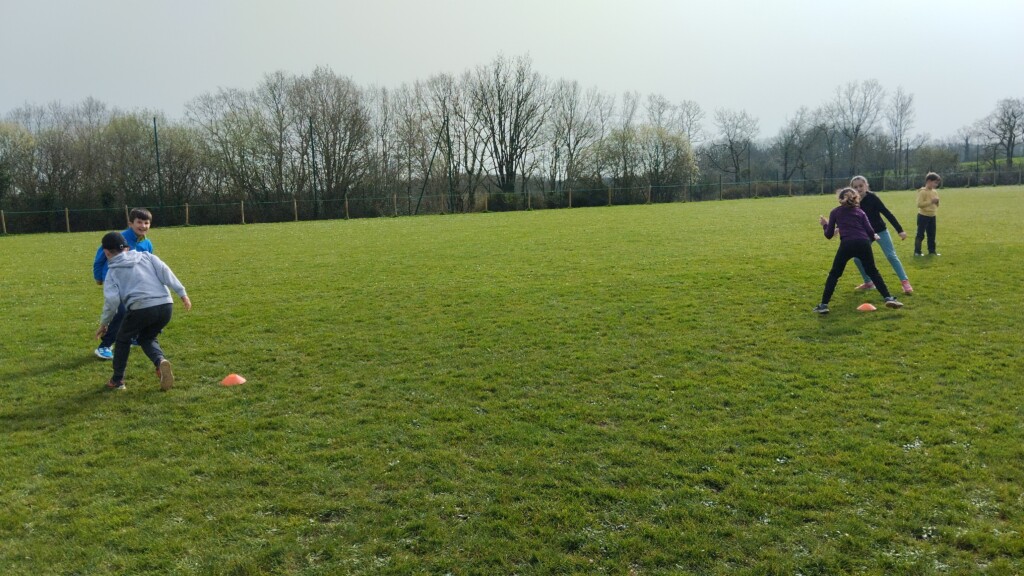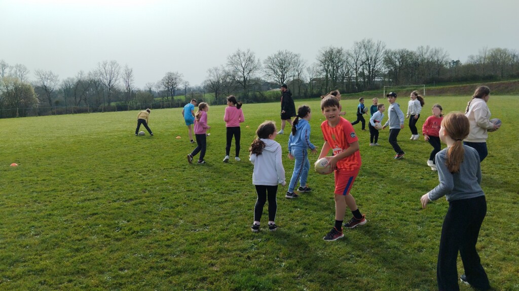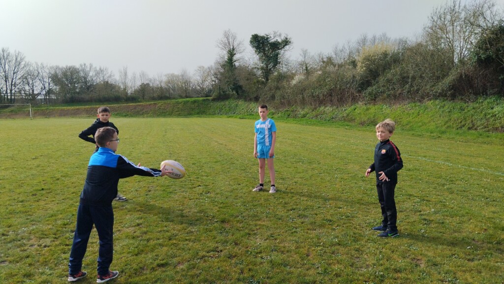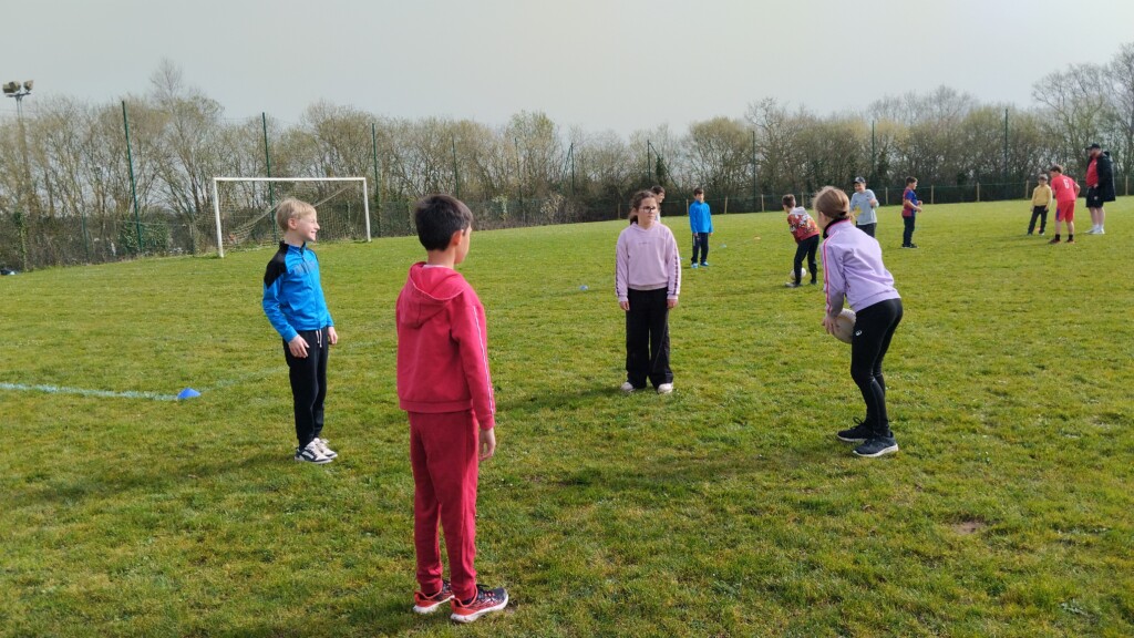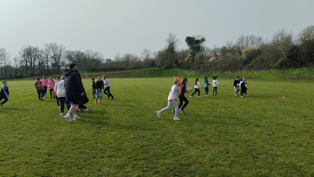 Jeudi 5 mars, les élèves de CM1-CM2 accompagnés par les CE1 ont commencé un cycle de rugby. Ils étaient encadrés par Hugo, éducateur sportif au club de Rugby de La Roche Sur Yon.